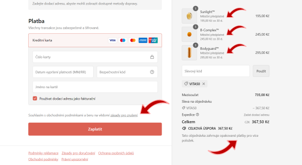 Obnovení objednávek probíhá automaticky každých 30 dní. Před každým obnovením si můžete upravit obsah balíčku, změnit datum další objednávky nebo aktivovat speciální slevu, pokud je k dispozici.
